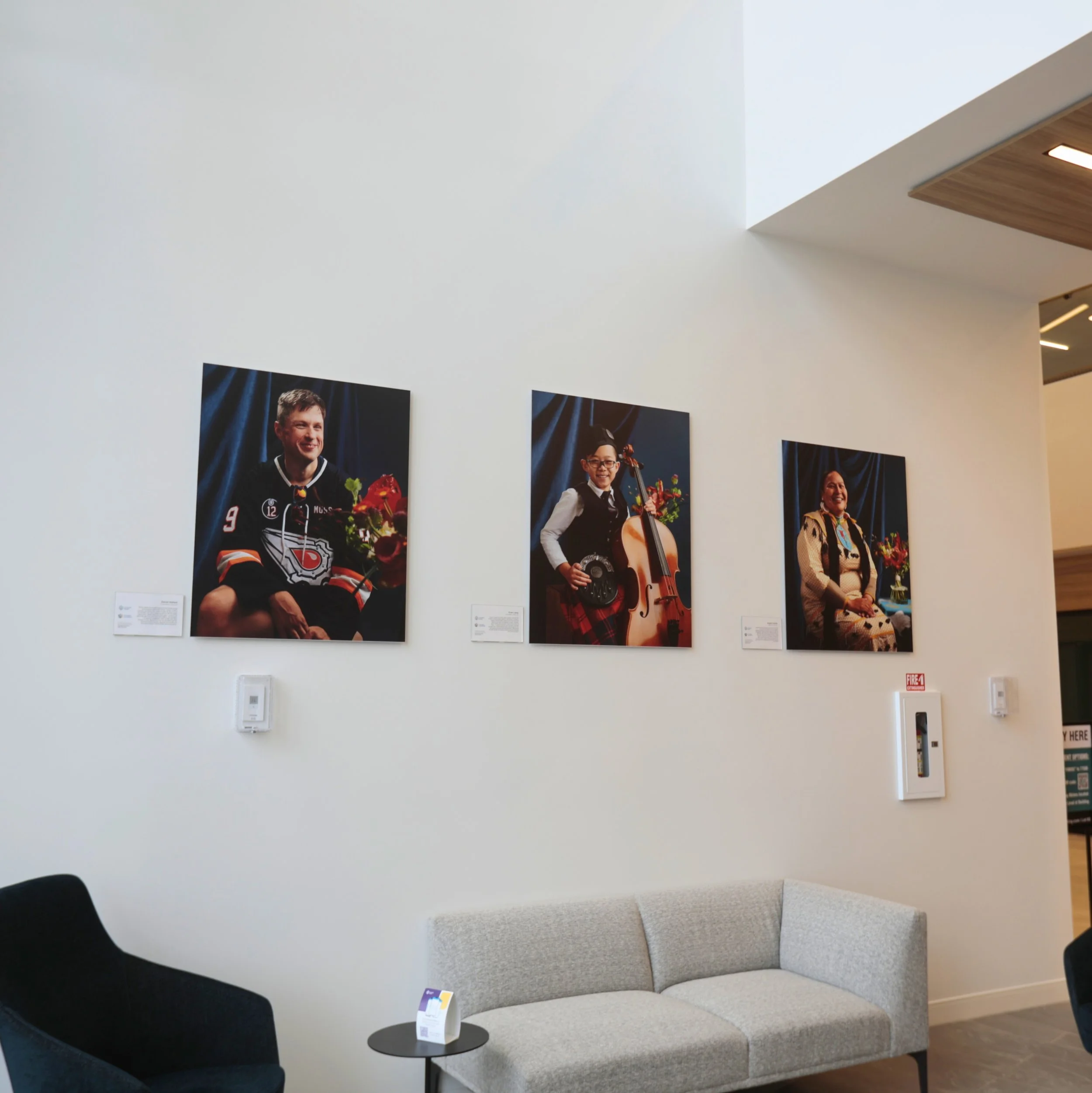 Daniel Gallant’s, Evan Liang’s and Angela Parisian’s portraits are displayed at the Covenant Community Health Centre.